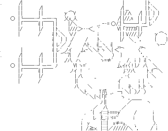 ○ |└──‐┘ー―‐┐ 乂x_人 /| |//,ハ | | | レ' /
