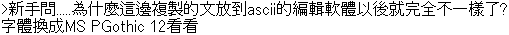 [20120] (無題) Name:名無し Date: 2017/03/31(Fri) 18:03 [画像化 (非透過)] [処理]新手問.....為什麼這邊複製的文放到ascii的編輯軟體以後就完全不一樣了?