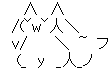 (  ̄ `ヽ、 ./  ̄ヽ__) /∨ )